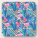 Flamingo & Palms on Geometric Pattern Coaster