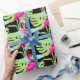 Flamingo pink bird graphic patterned wrapping paper. Cute whimsical pink flamingo in a pool of water with tropical palm leaves tissue paper on a black background that can be changed to your own colour choice if required. Original graphic art and design by Sarah Trett www.sarahtrett.com for www.mylittleeden.com on zazzle.