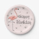 Flamingo Pink Happy Birthday paper plate