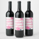 Flamingo Pink White Stripe Floral Chic Silver Wine Label