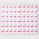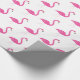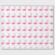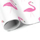 Pretty pink flamingos on a white background decorate this tropical party wrapping paper, making it perfect for a birthday, shower or any summery special occasion.