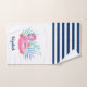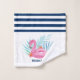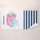 Flamingo Pool Float Navy Blue White Striped Bath Towel Set