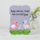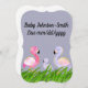 This flamingo pregnancy announcement flat card, features two flamingos with their baby on a pale purple background.