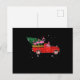 Flamingo Riding Red Truck Xmas Santa Hat Christmas Announcement Postcard