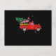 Flamingo Riding Red Truck Xmas Santa Hat Christmas Invitation Postcard