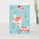 Flamingo Santa Blue Merry Christmas Holiday Card