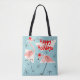 Flamingo Santas Blue Happy Holidays all over Tote Bag