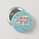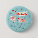 Flamingo Santas Blue Name button round