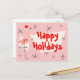 A lively, quirky Christmas design with retro touch featuring a pink flamingo wearing a Santa hat, cream geometric shapes, and stars on a pink (colour change) background. A customisable design for you to personalise with your own text, images and ideas. An original digital art image created by QuirkyChic.