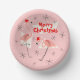 Flamingo Santas Pink Merry Christmas Paper Plate