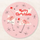 Flamingo Santas Pink Merry Christmas round Paper Coaster