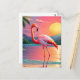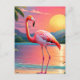 Pink flamingo Bird on a tropical beach with the sea an a sunset in the background