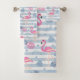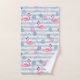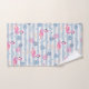 Add a touch of tropical charm to your bathroom or beach day with this vibrant towel featuring a playful pattern of pink flamingos, vibrant pineapples, and lush tropical leaves set against a soothing light blue and white striped background. Perfect for adding a splash of fun and colour to your everyday routine, this whimsical towel combines softness and style, making it an ideal accessory for any occasion.