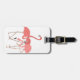 A trio of pink flamingos for summer travel and throughout the year. Add your name and contact information on the reverse side of the luggage tag by replacing the sample text shown in the design template.