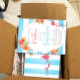 Flamingo Tropical Flowers Blue Stripe Baby Shower Invitation