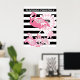 Flamingo Vibes Only Black & White Stripe Flamingo Poster