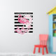 The product design features a flamingo with kaleidoscopic paisley patterns in shades of pink over black and white stripes background. This tropical bird design with personalised text makes a modern and unique poster.