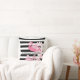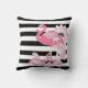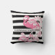 Flamingo Vibes Only Black & White Stripes Flamingo Cushion