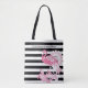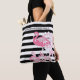 Flamingo Vibes Only Black & White Stripes Flamingo Tote Bag