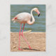 Flamingo (Phoenicopterus) seen from profile walking near a pond