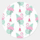Flamingo & Watermelon Pastel Pattern Classic Round Sticker