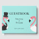 A wedding guestbook with a flamingo theme. It features a flamingo bride and flamingo groom. Simply add your names & the date, add this guestbook to your cart, and enjoy your flamingo-filled wedding.
