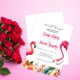 Featuring whimsical illustrations of graceful flamingos amidst lush greenery and vibrant flowers, these invitations capture the essence of a romantic destination wedding. Perfect for couples seeking a touch of exotic charm and laid-back elegance, each invitation is meticulously crafted with attention to detail. Printed on high-quality paper, our invitations promise a stunning presentation that sets the perfect tone for your special day.