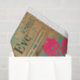 This bold and tropical decoupage design features a striking pair of coral flamingos standing gracefully among bright hibiscus flowers, grungy chequerboard accents, and layered vintage ephemera. Set on a teal and distressed parchment background, it blends painterly realism with whimsical collage in a way that feels both playful and elegant.