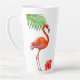 Beautiful flamingos, hibiscus and palm leaves on white.