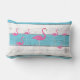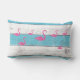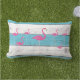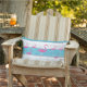 This fun and tropical outdoor cushion is decorated with bright pink flamingos on a striped turquoise and white background, making it the perfect summertime accessory for the beach house, pool house, boat, cottage, patio, deck or pool area. This pillow coordinates perfectly with several other outdoor cushions in the Outdoor Pillow Collection of PrettyFancyPillows.