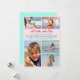 Flamingos family Christmas flat photo card with a place for five pictures of the kids, pets, parents or vacation photos. Pale pink colour with two photo templates at the top. A row of pink flamingos wearing tropical holiday wreaths and standing among tiny blue starfish decorate the text area. Modern text is easy to customise with your choice of greeting and a family signature in tropical colours. At the bottom of this flat card include three more photos. Reverse is bright turquoise green.
