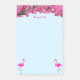 Flamingos and tropical magenta pink flowers on light blue Notes. Text can be personalised. Flamingos can be exchanged for your favourite logo or image.
