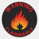 Warning - Flammable - black sticker with yellow-orange flame graphic.