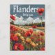 A poignant and nostalgic depiction of Flanders, Belgium, highlighting its iconic poppy fields, which symbolise remembrance of World War I. The design captures the serene beauty of vibrant red poppies stretching across rolling fields under a soft, blue sky. Rendered in a vintage style, the artwork evokes the tranquil and reflective atmosphere of Flanders, inviting viewers to appreciate its historical significance and natural charm.