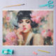Channel the sultry elegance of the Roaring Twenties with this decoupage tissue paper featuring a glamourous flapper adorned in pearls, gold accents, and a bold floral headpiece. With a cigarette holder in hand and a dreamy haze of painterly florals in the background, this vintage-inspired design is perfect for upscale bar décor, jazz-era events, speakeasy crafts, and feminine glam DIY projects.