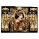 A beautiful brunette Flapper girl is wearing an off-shoulder faux gold shimmer top and headband that appear to sparkle and shine against a black background. She is wearing thick black eyeliner and dark red lipstick that makes her porcelain skin appear to radiate in the light and is framed a retro, art deco style ornate faux gold frame. Flanking her are three glamourous flapper dancers in satin gold figure-hugging dresses. They are stepping onto a stage about to dance the night away. This design is ideal for a "great gatsby", "roaring twenties", 1920's Flapper girl theme birthday, bridal shower, wedding or anniversary. It is ideal for decoupage and scrapbooking projects too.