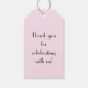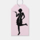 Set of 10 rectangular gift tags with an image of a silhouette of a flapper wearing a cloche hat and a long string of white pearls and holding a long cigarette holder on pink. The back is pink with customisable text. See the entire Roaring 20s Favour & Gift Tag collection in the PARTY FAVORS section.