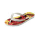 The flip flops arrived in a most colorful package which also had them double bagged in a black drawstring pouch which makes them great for gifting.  They are a quality product with plenty of durability. The printing is vivid and true to that pictured on the web.  Great look!