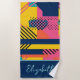 If you loved the 80s, than you will love this stylish beach towel. Featuring bright colours and shapes, there is a template for customising your name at the bottom. Perfect for your next vacation, order yours today!