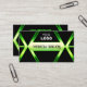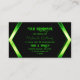 Make a lasting impression with this eye catching and elegant business card design featuring modern black geometric graphics with bright green shimmer background.