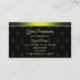 Make a lasting impression with this elegant business card design featuring shimmery black and yellow gradient borders and monogram pattern on a black background.