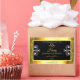 Matching a shimmery yellow gold frame and cute hearts graphic on a black background.