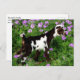 Flashy and Cute Nigerian Dwarf Goat Kid in purple flowers postcard