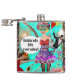 Well made flask, a little better than I had expected. Flask came in clear plastic box which gave it a nice presentation when I took it out of the zazzle packaging. Image is not printed on flask but on sticker. Don't know how this will hold up I haven't used it yet. This would make a Great gift! I plan to purchase more for friends! Cheers. I thought a little brighter than computer. Very crisp, writing wasn't