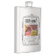 The product is a good size and came exactly as it was pictured. The lid is not attached to the flask, which could be dangerous on drunken nights... The print came out surprisingly well and looks very sharp. Would definitely recommend.