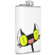 A charming flask featuring a playful black cartoon kitten with large yellow eyes and a cheerful, expressive smile. This fun design is perfect for cat lovers who want a touch of whimsy on the go.