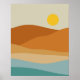 Flat Boho Abstract Landscape Sunset and Mountains Poster