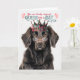 Birthday wishes fit for the queen of a Flat Coated Retriever dog and this cutie is ready to spread the love and treats around. A greeting sure to make the retriever mum, wag.