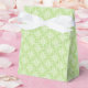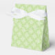 Green cross pattern favour boxes combining oval and dot shape elements.
