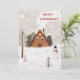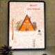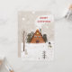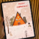 Hand drawn illustration of cosy cabin under a gentle snowfall create a peaceful holiday ambiance and evokes the magic of Christmas. Give comfort and warmth to your loved ones, add text to the back of the card to add a personal message.